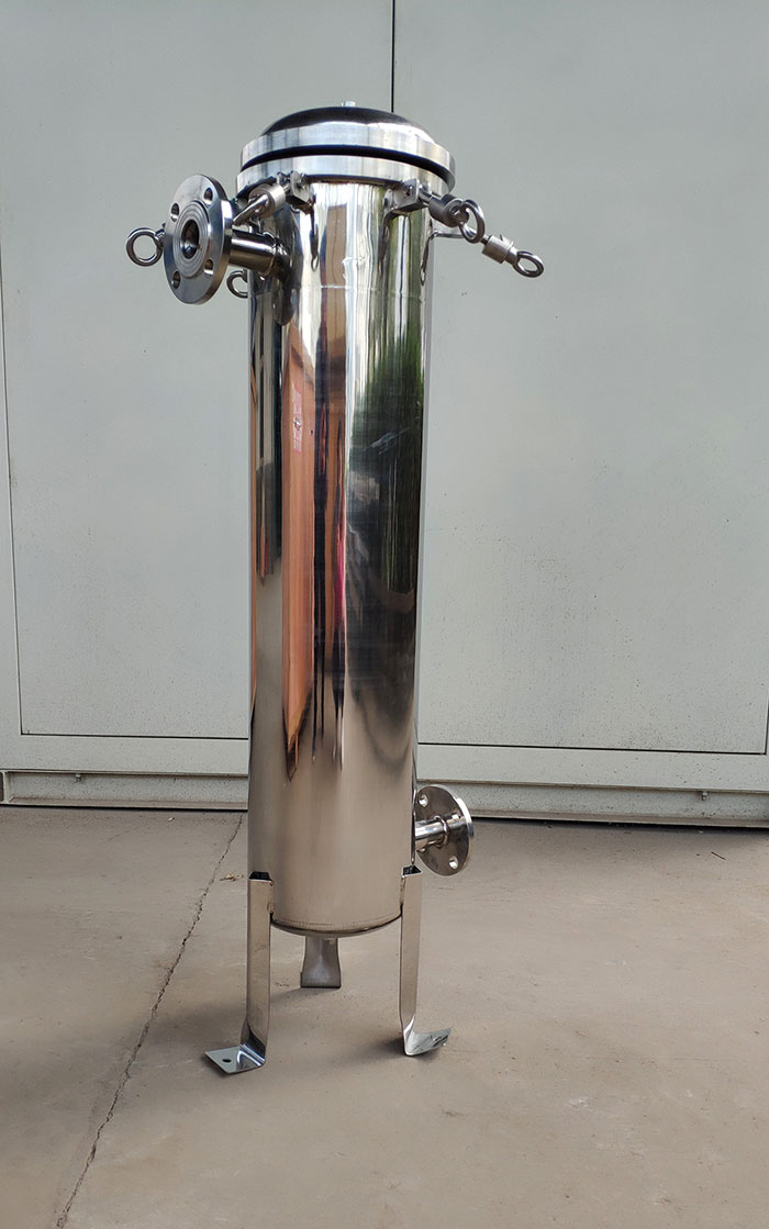 袋式過濾器是一種壓力式過濾裝置,主要由過濾筒體、上蓋、快開裝置、支撐網(wǎng)籃等部件組成。液體由設(shè)備入口流進(jìn),經(jīng)濾袋過濾后從出口流出,雜質(zhì)被攔截在濾袋之中,維護(hù)時(shí)只需更換濾袋即可。此過濾器內(nèi)部采用濾袋作為過濾元件,濾袋由金屬網(wǎng)籃支撐,適合液體精密過濾,去除其中的微量細(xì)小雜質(zhì) 。此過濾器具有結(jié)構(gòu)簡(jiǎn)潔,操作快捷靈活,耗材經(jīng)濟(jì)的優(yōu)勢(shì),并配備多種高性能濾袋,能夠滿足絕大多數(shù)過濾要求。