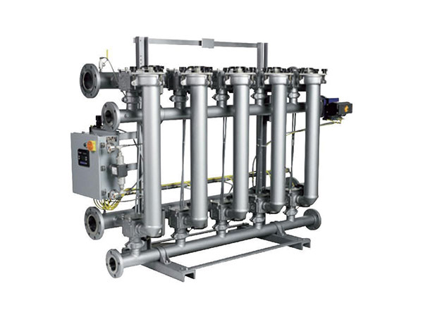 列管式自清洗過濾器采用PLC全智能控制,可以長期在線過濾。列管式自清洗過濾器由進口閥和出口閥連接到總管線上的一個或多個過濾回路組成,每個過濾回路被稱為“一列”,每列過濾器有數個過濾單元組成。每列過濾器的過濾單元的個數及反沖洗過濾器的總列數要根據所要求的工藝特性即流量、流速、粘度、介質中的顆粒平均含量和一些其它過程參數確定。