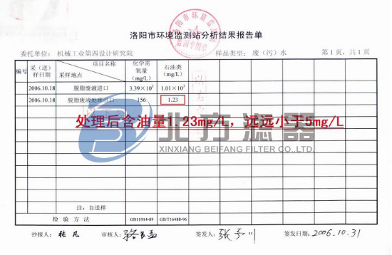 PS:本公司保證設(shè)備處理效果的真實,熱忱歡迎新老客戶攜帶含油廢水樣液前來我司進(jìn)行油水分離機的現(xiàn)場試驗。嚴(yán)禁同行不經(jīng)允許盜用本公司圖片,否則后果自負(fù)。